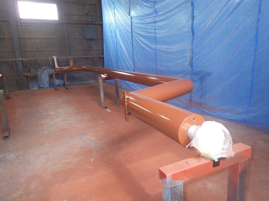 主な塗装実績として、各種タンク、フランジ付鋼管類、水管橋、照明柱、土木用埋設鋼管などがあり、重量物や長物にも対応できます。